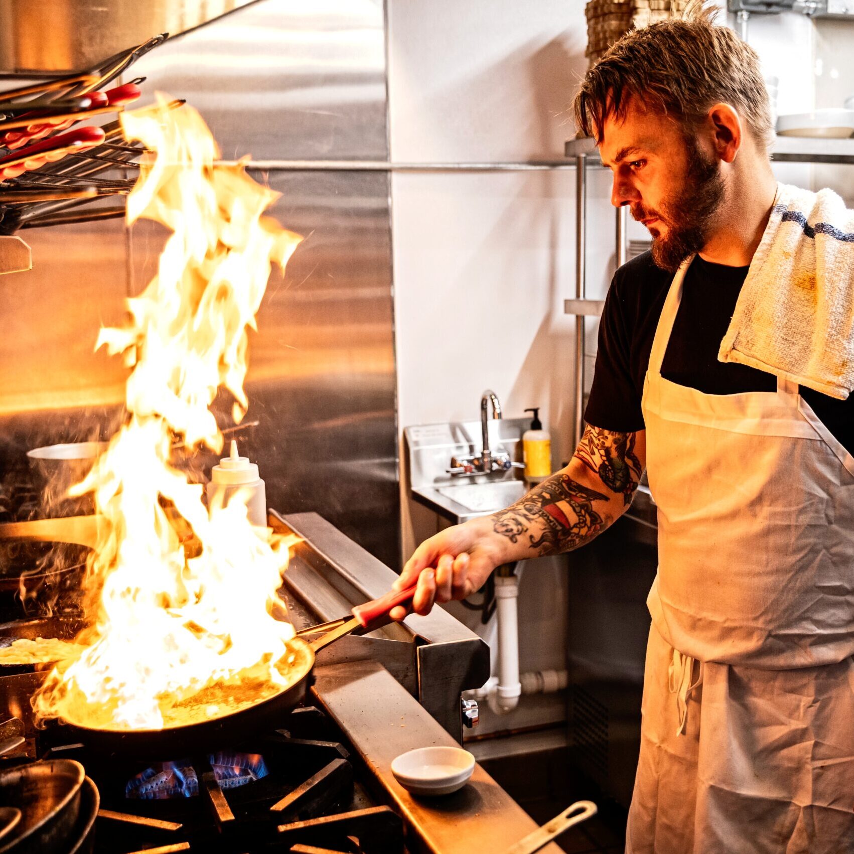 Our restaurant is located on the basement level of a historic building and requires descending three steps to enter. As a result, our indoor dining space is unfortunately not wheelchair accessible.